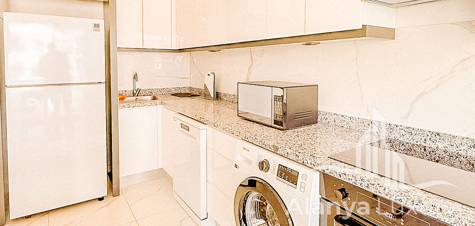 The apartment is fully equipped with modern, elegant furniture and high-quality appliances. It’s ideal for long-term living or as a holiday home in the heart of Alanya.