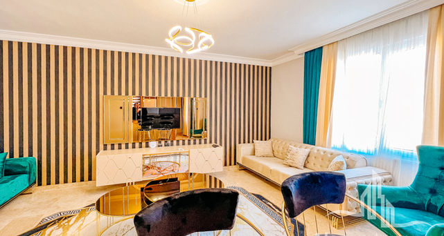 This elegant 2+1 apartment offers 115 m² of thoughtfully designed living space in a building just a few steps from the beach. Located on the 4th floor of a well-maintained five-story residence, it impresses with its panoramic sea view and timeless interior design.